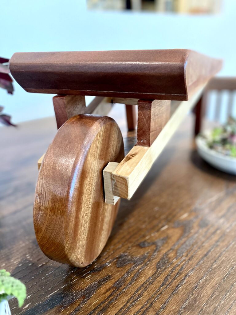 Made of Sapelle and Maple, this was more of a fact learning mission to see how workable the wood that I’ll be using for our dining room table is.