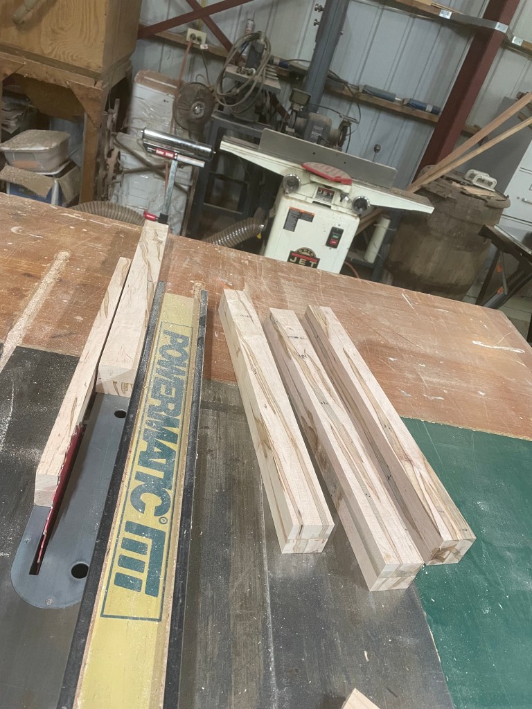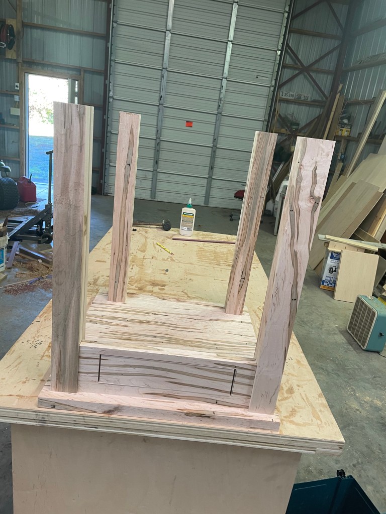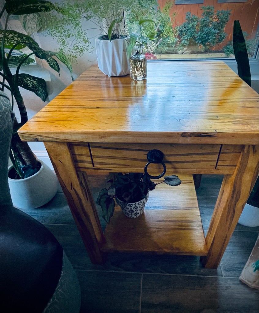 If we go back almost two years, I made my sister, Sheerie a coffee table using this same infected maple. Now I’m making the matching end table. I had free rein over the basic design, Sheerie only specified a bottom shelf and the basic measurements.