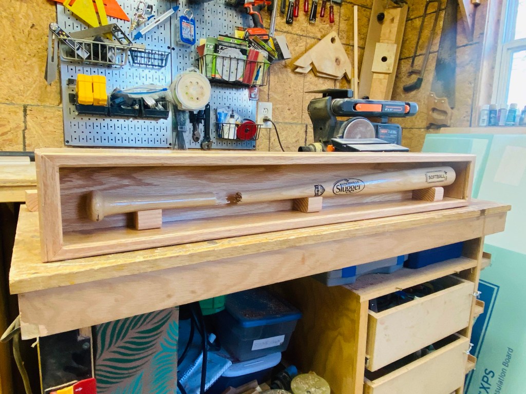 If you want to see the bat on display and the display case which I made, just visit Renshi Cassie at her location in Fairlington 🙂 Tell her Gary-Sensei sent you 🙂