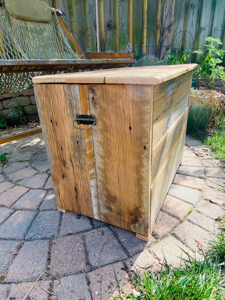 Glen has this old barn up in Maryland where he has this stock pile of old lumber, its weathered and heavy. Using simple construction methods I made a wooden chest. It now lives on out front porch.