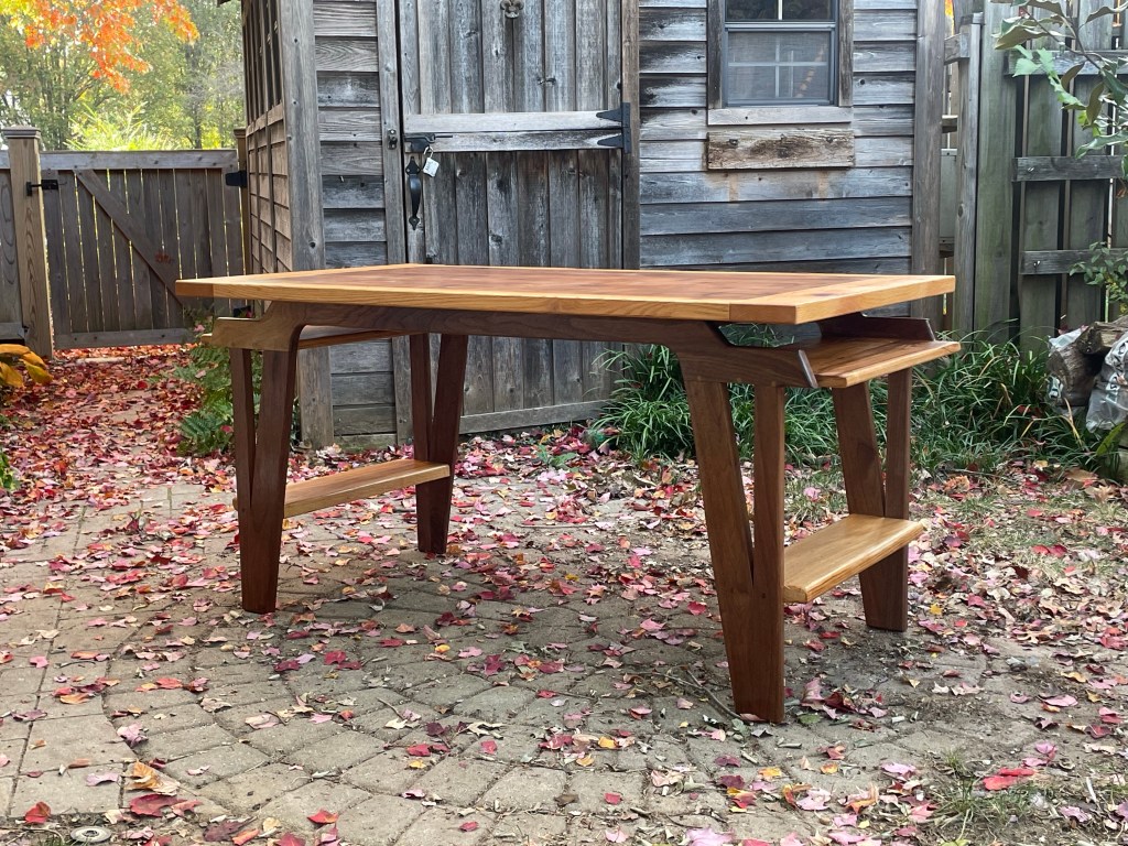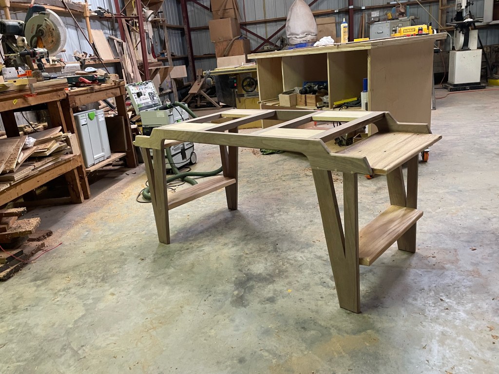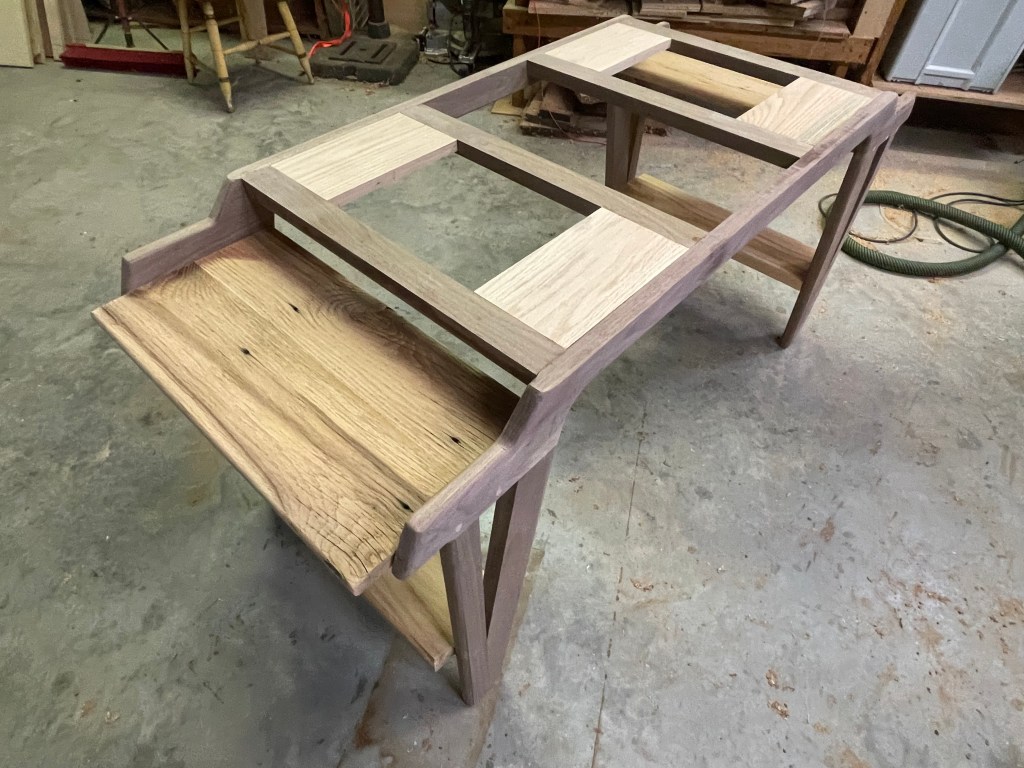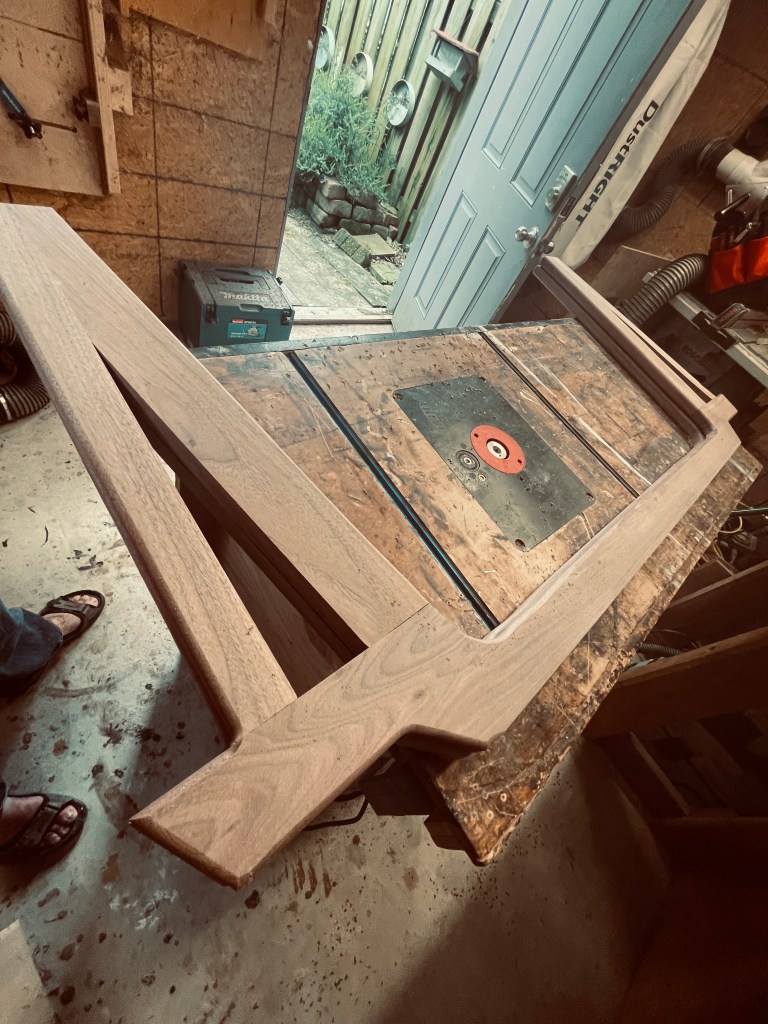 The design included things in woodworking that I had never done. A breadboard top and using a pattern router bit to make matching pieces from a plywood template.