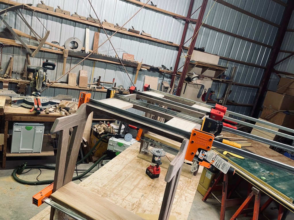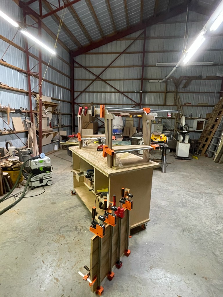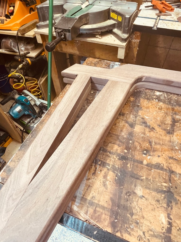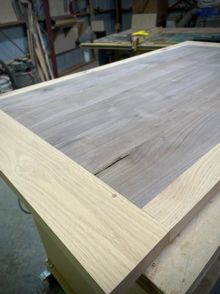 The design included things in woodworking that I had never done. A breadboard top and using a pattern router bit to make matching pieces from a plywood template.