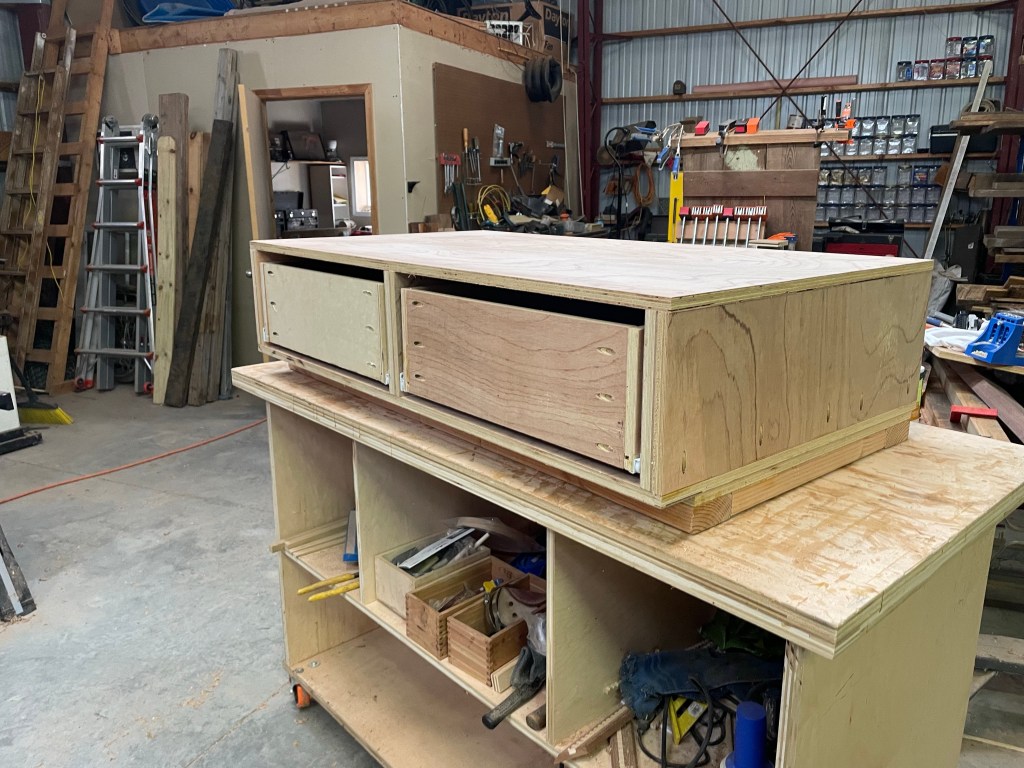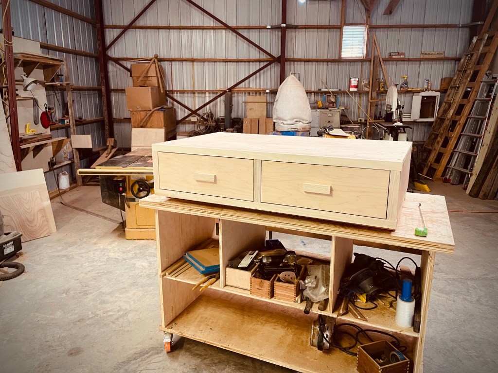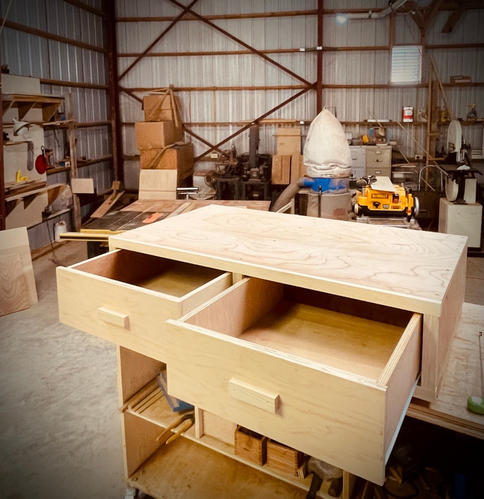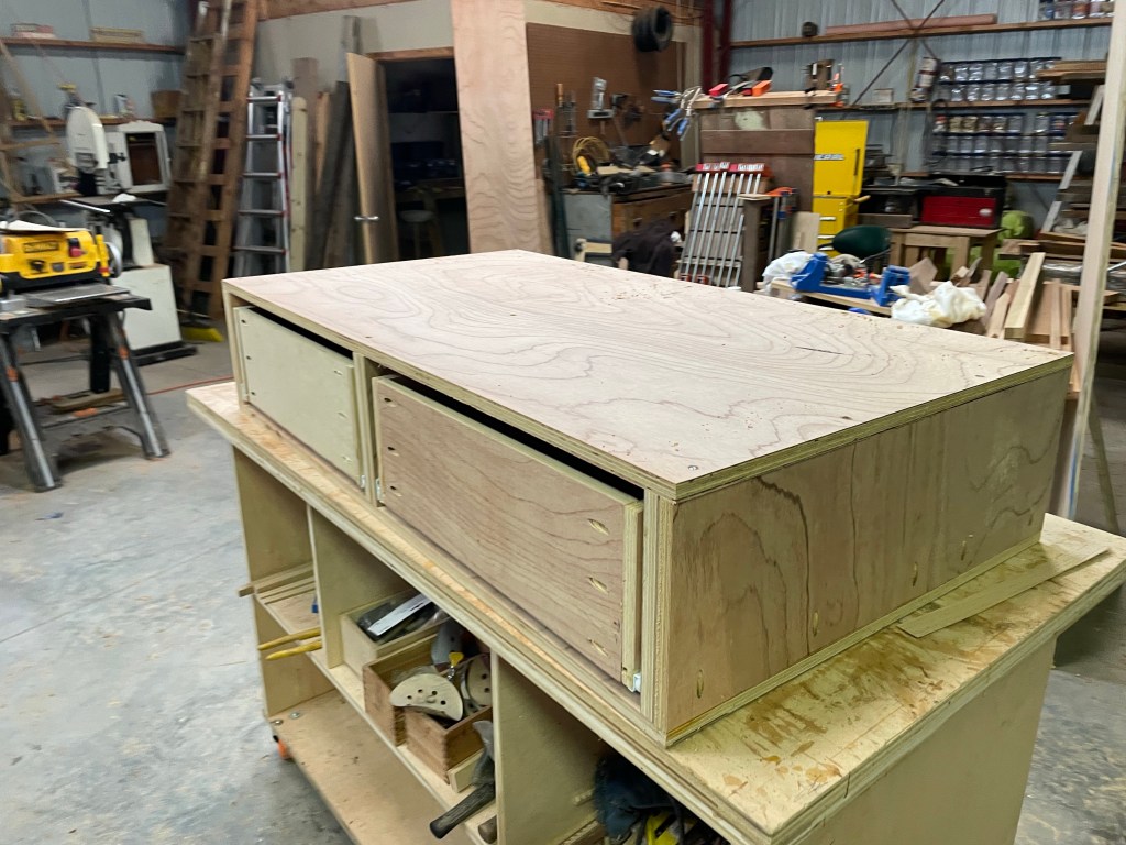 I headed to my big shop ran some plywood through the table saw, found a reason to use 4 drills and 2 Kreg jigs then delivered the completed platform the same weekend.