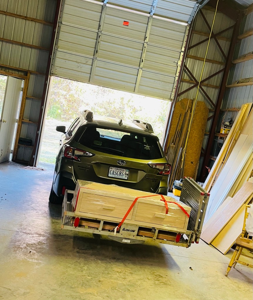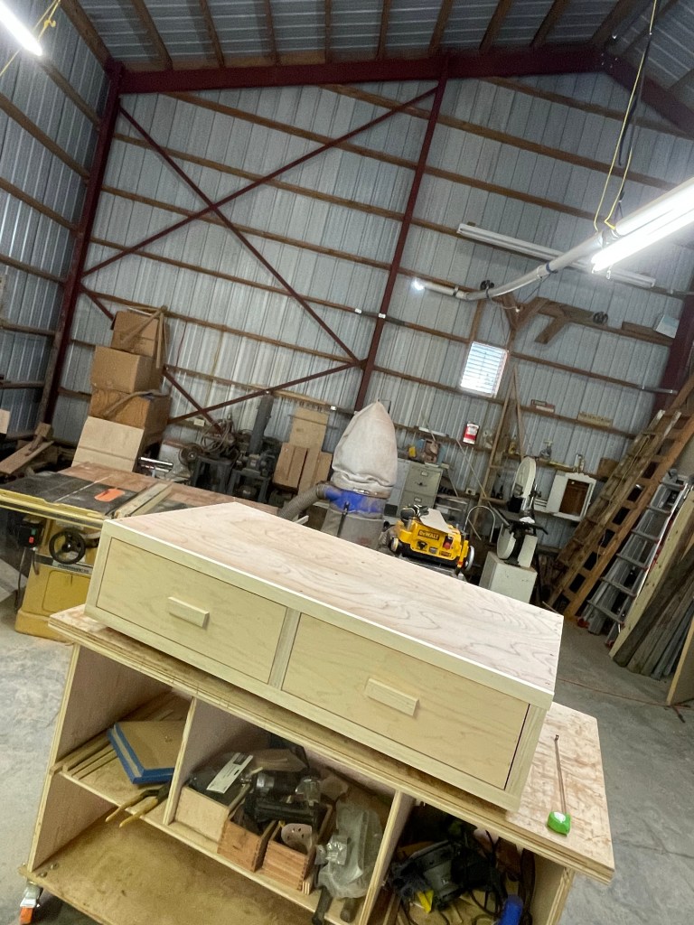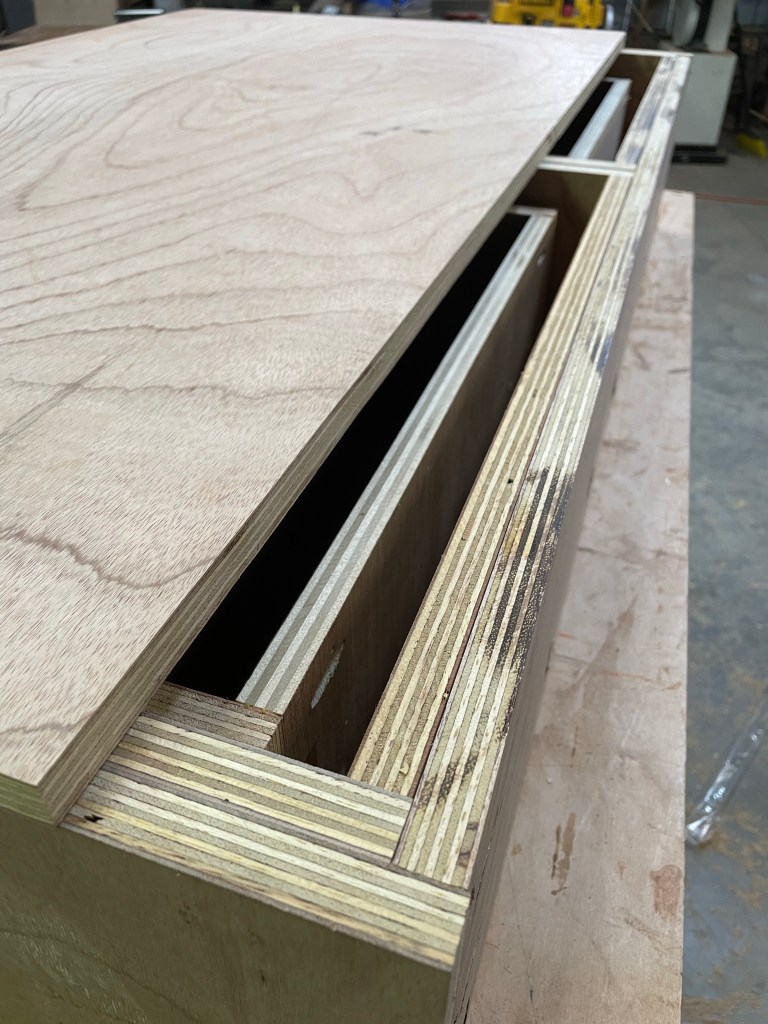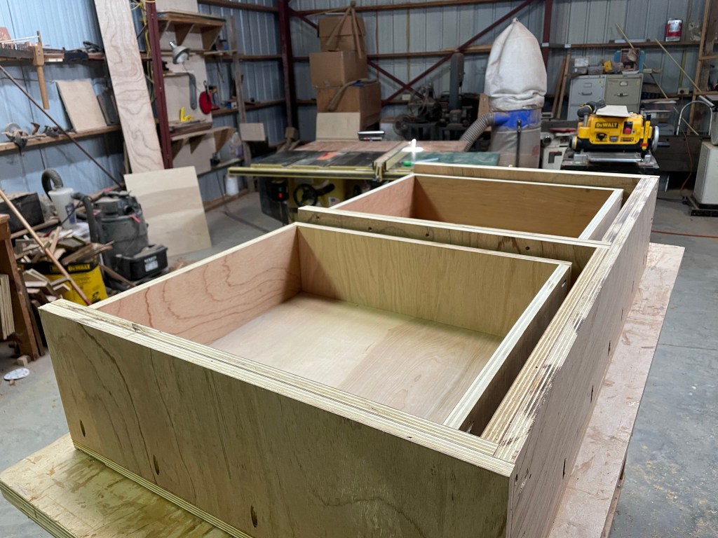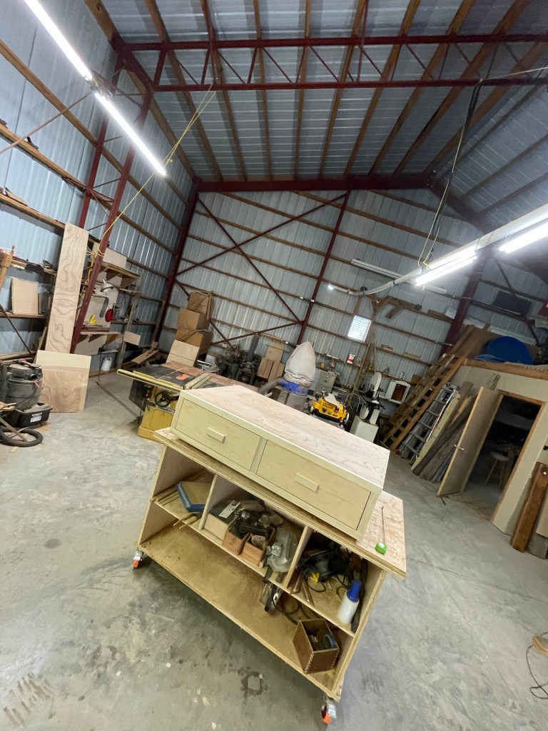 I headed to my big shop ran some plywood through the table saw, found a reason to use 4 drills and 2 Kreg jigs then delivered the completed platform the same weekend.