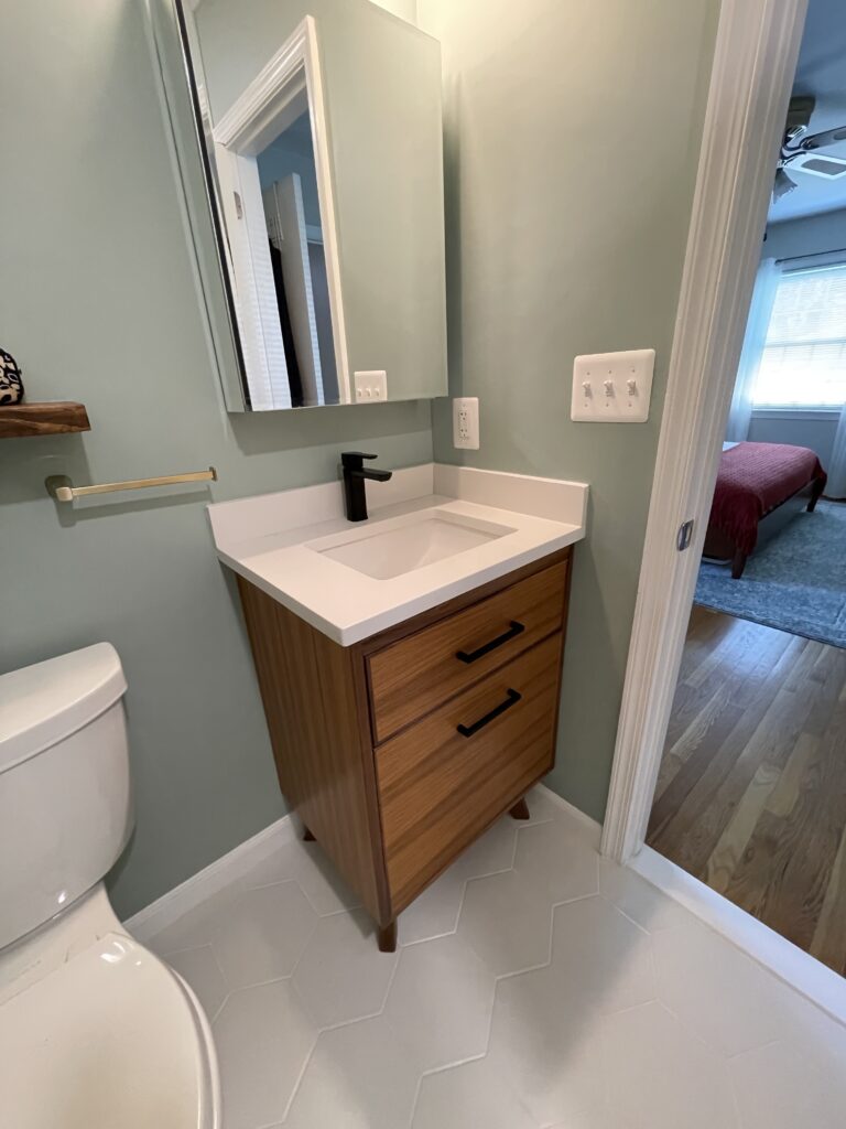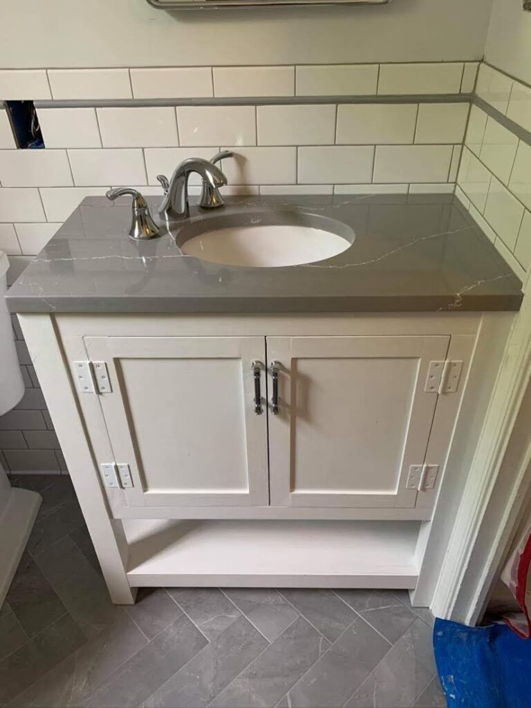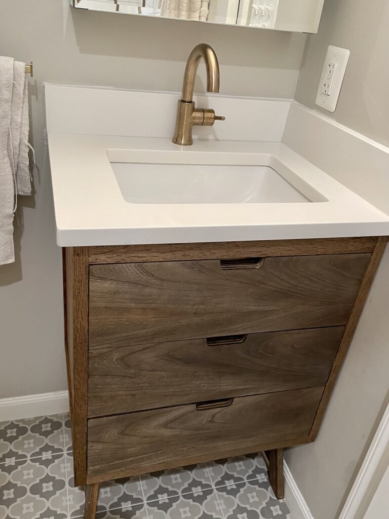 I was contacted by someone from our neighborhood who found me from the Jefferson Manor Facebook page. She needed a custom vanity made and she needed it on a deadline. If you have been in our home or any in our neighborhood (some 500 homes) you will soon realize that they all have the same