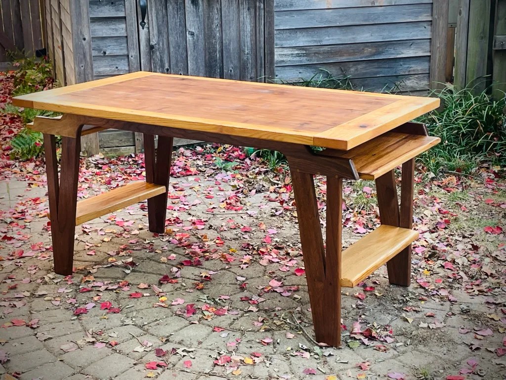 From Design to reality. The design included things in woodworking that I had never done. A breadboard top and using a pattern router bit to make matching pieces from a plywood template. I enjoyed this build immensely