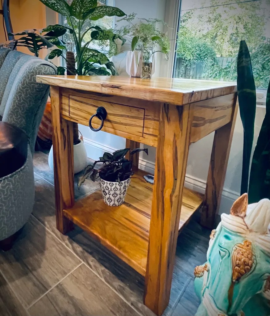 While in the process of making this end table I was actually seeing ambrosia maple every time I closed my eyes. The patterns, the light and dark stripes, and even the little beetle holes in the wood. They just came alive when I closed my eyes. Yes, you read that correctly beetle holes… some maple