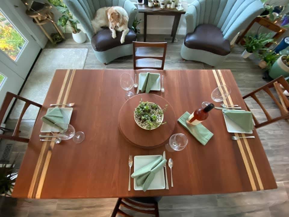 How this table came to be? I received a chat message from someone who had met Kristi and I during one of our neighborhoods home and garden tours. I often open up my woodworking shop to show people around (I love showing off my woodworking shop) Anyway; a lil over a year after our meeting,