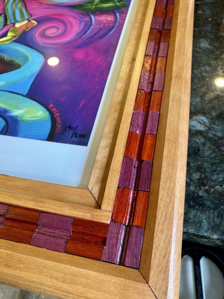 A wonderful Christmas from Kristi’s sister, gave me an opportunity to make a frame with some amazing hardwoods. What was the present? A limited edition print by Terrance Osborne, thanks Jenny! As soon as I opened it I started thinking of how I would make the frame and then of wood types to use. Purple