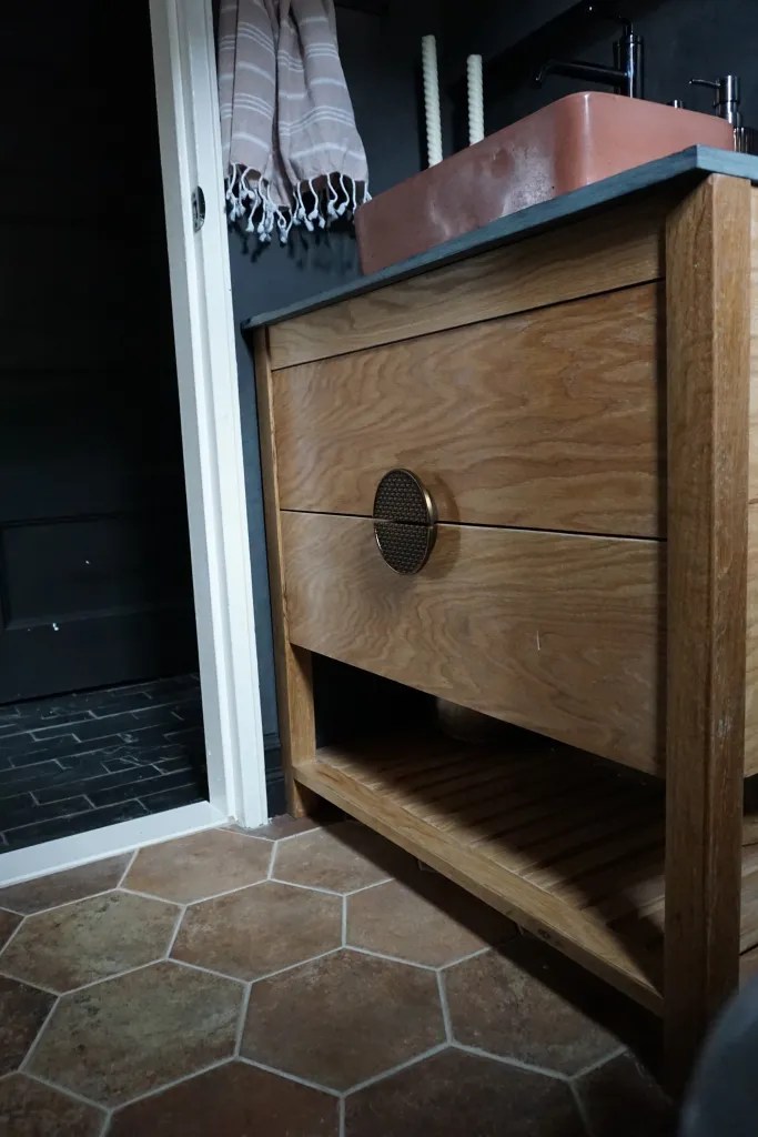 Ah, the bathroom vanity. Ever stroll down the plumbing aisle of your big box hardware store then see 20 to 30 of basically the same vanities, all made from particle board? A vast majority of my latest builds have been custom bathroom furniture (sink vanity’s). The NOVA area is full of small bathrooms and everyone